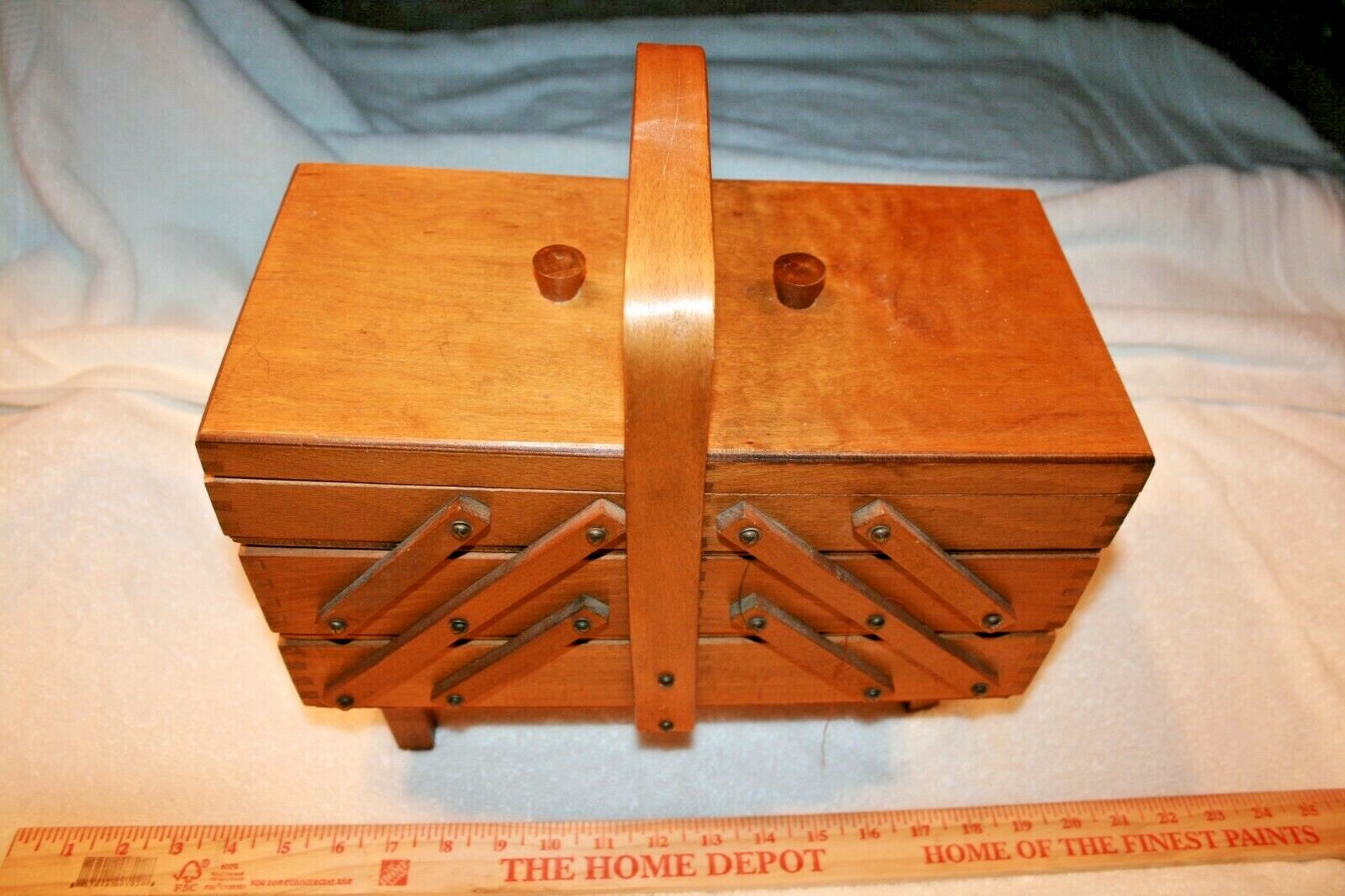 Homemade Handmade Wooden Portable Sewing Box 19 X 9 Inches Ebay